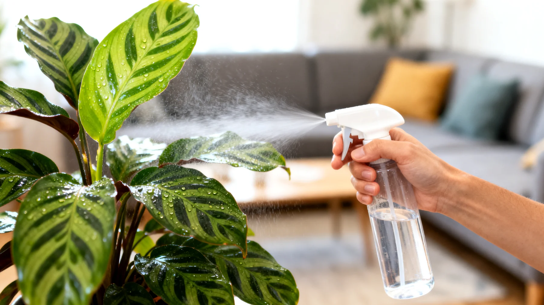 - Die Luftfeuchtigkeit durch regelmäßiges Sprühen oder Luftbefeuchter erhöhen – Schädlinge vermeiden feuchte Bedingungen